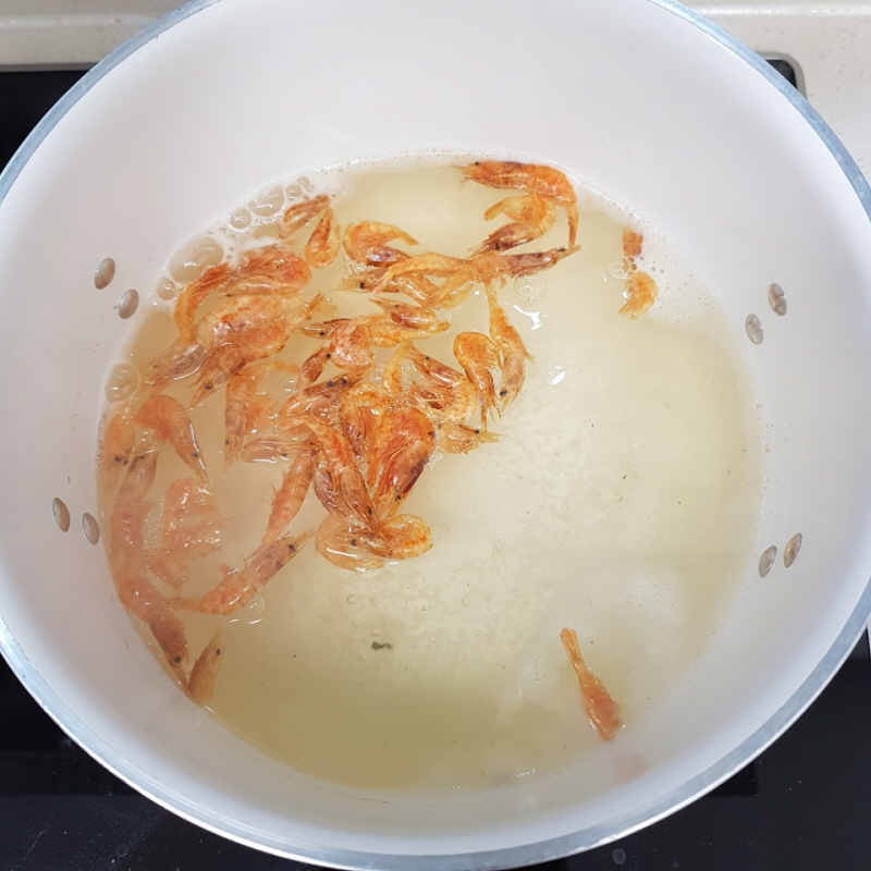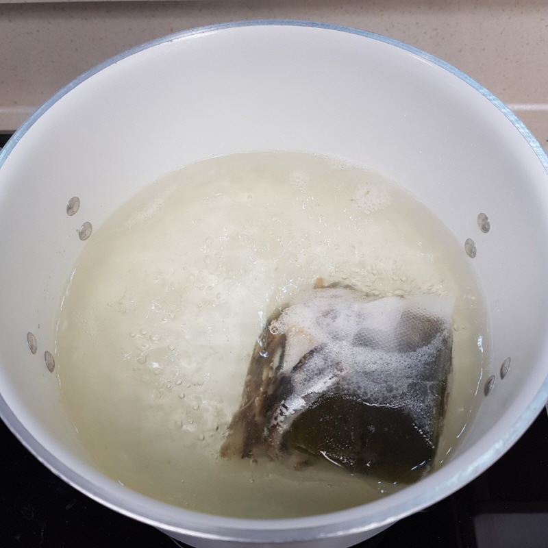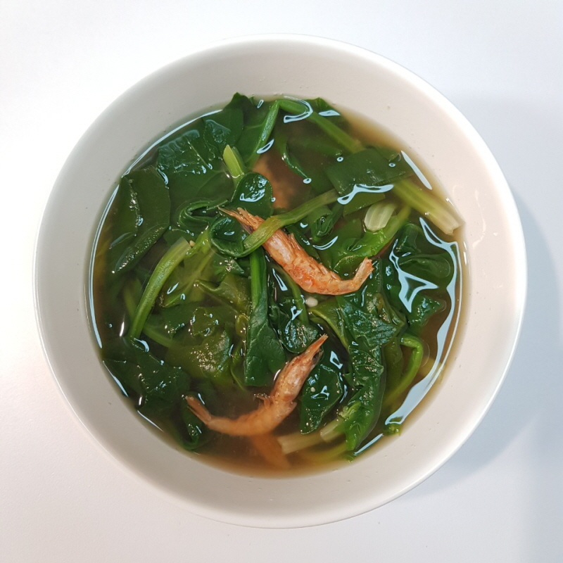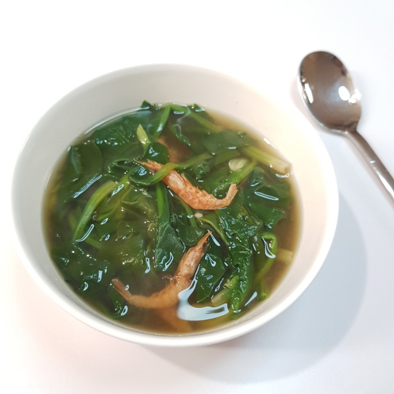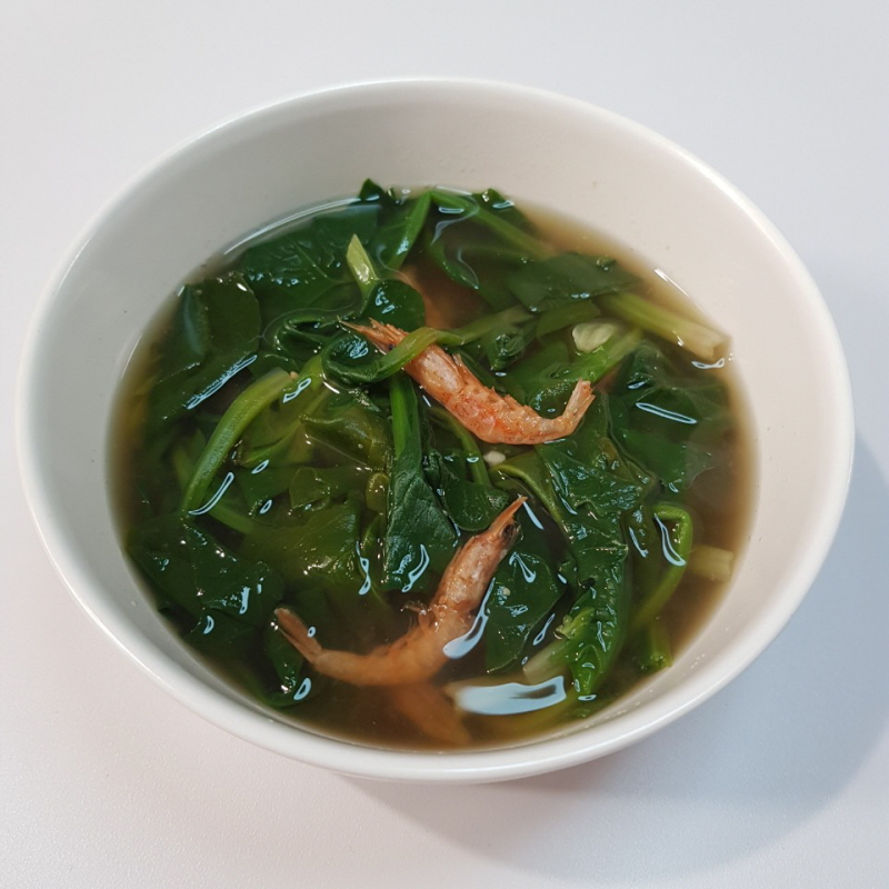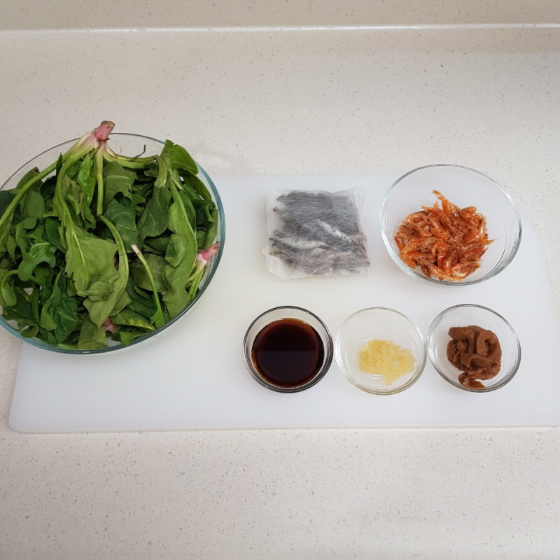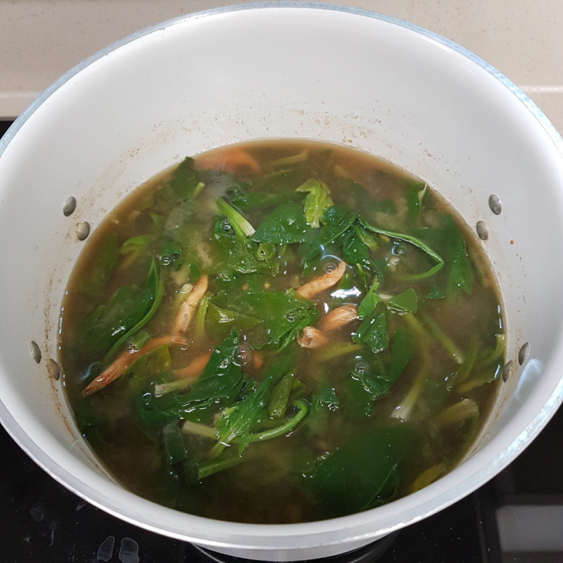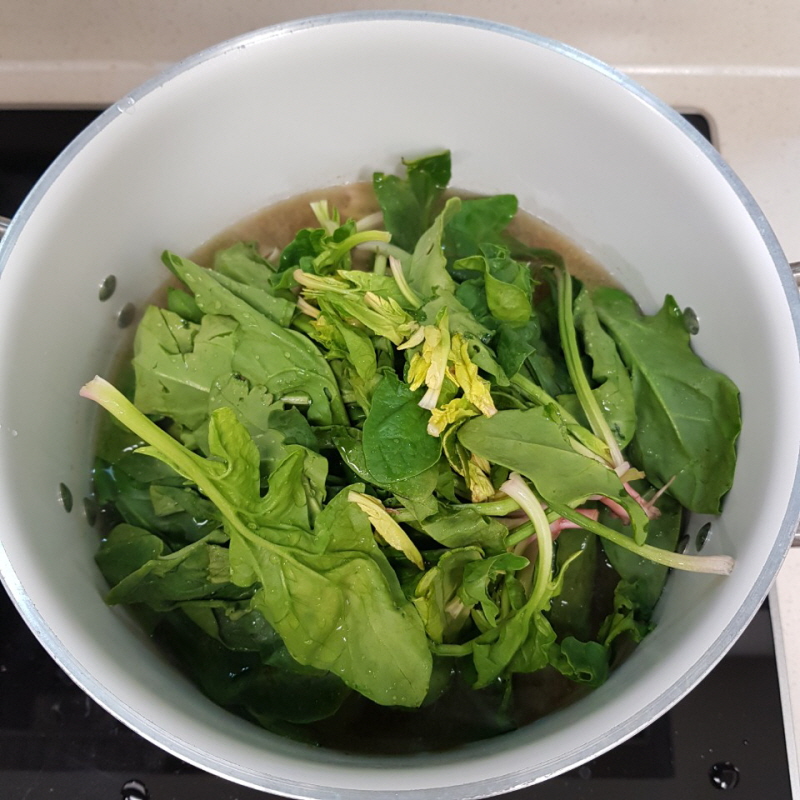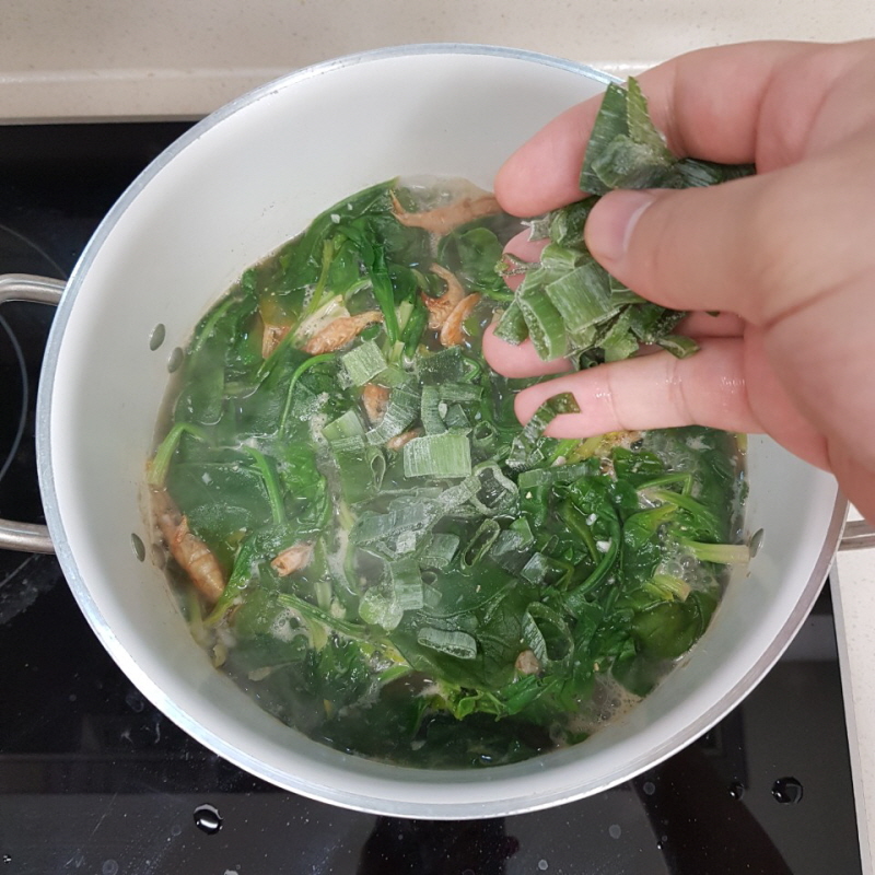 5. 된장 푼 육수물에 시금치를 넣어주세요.